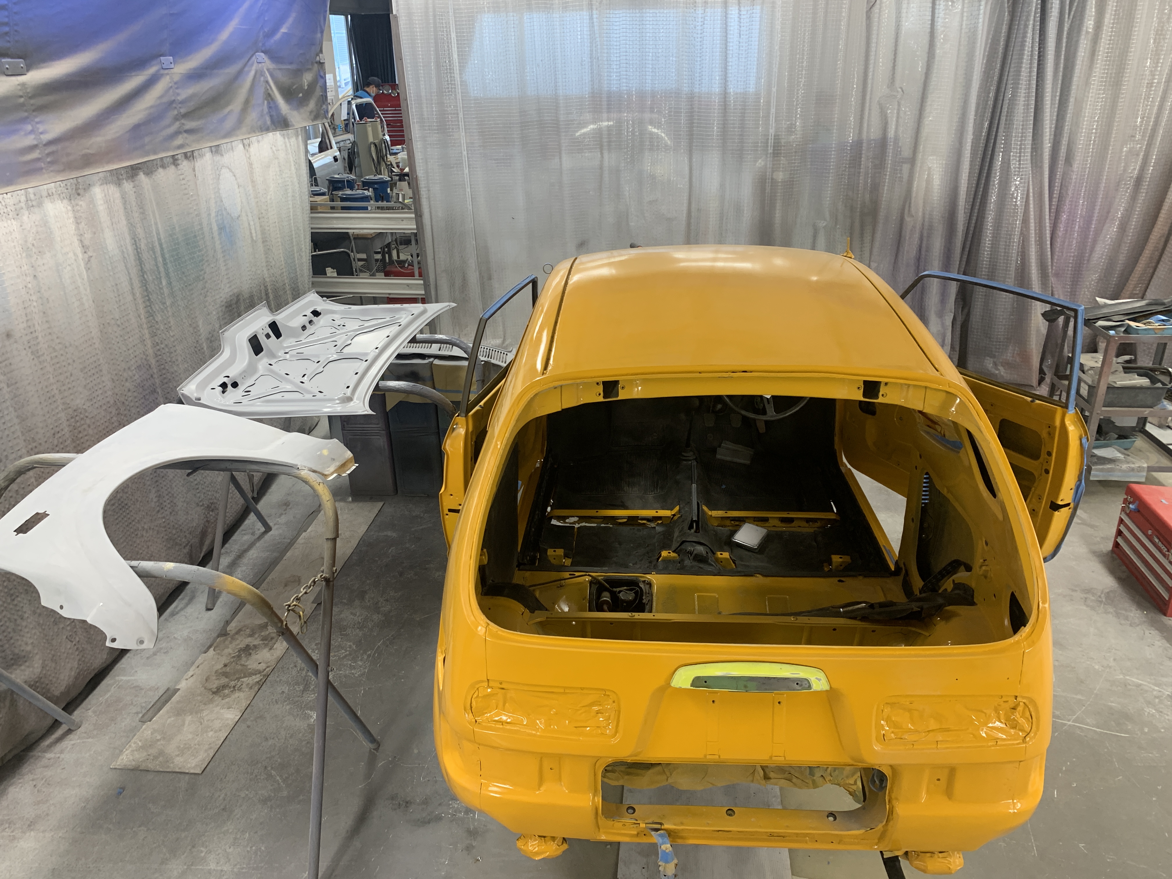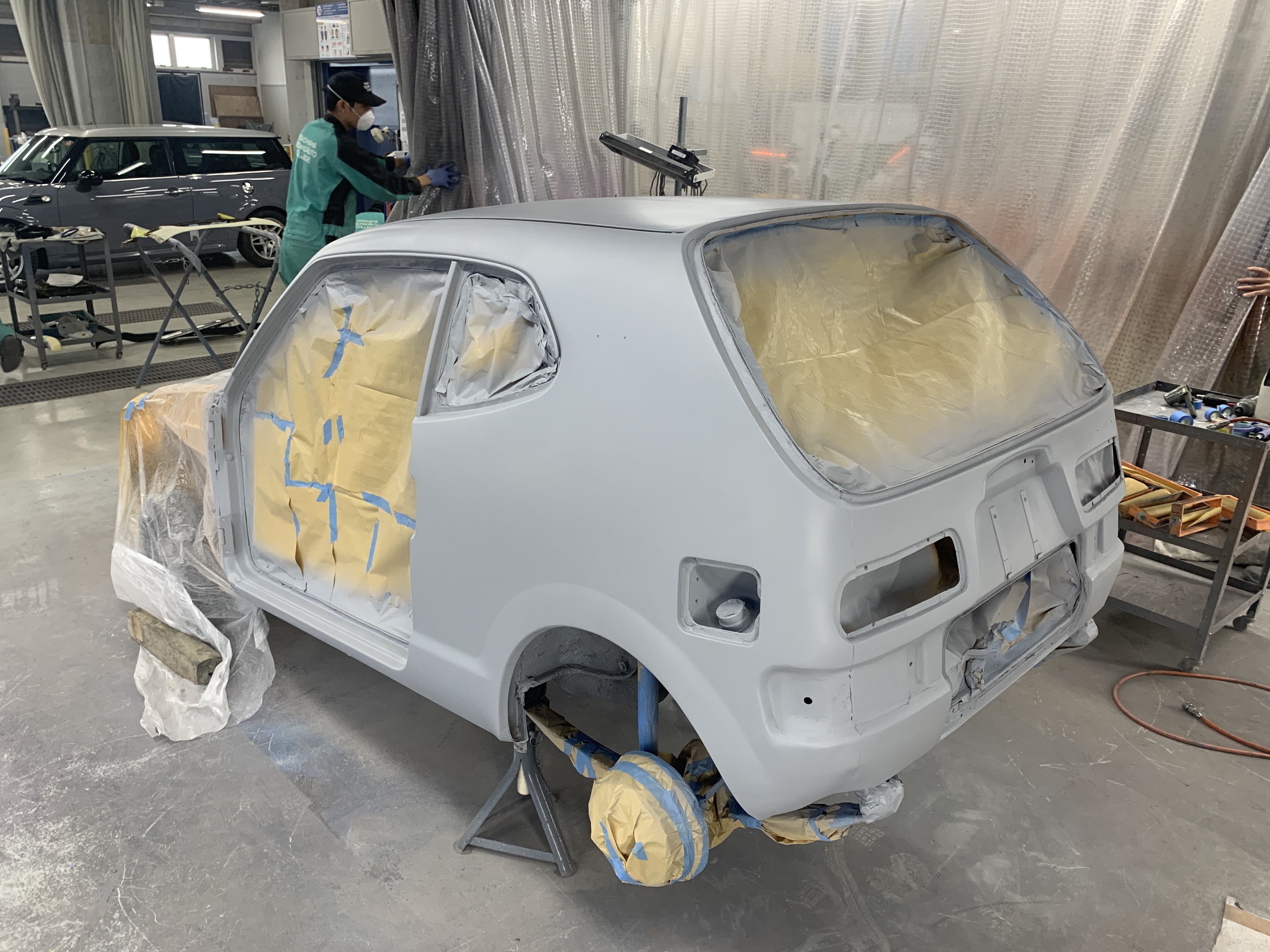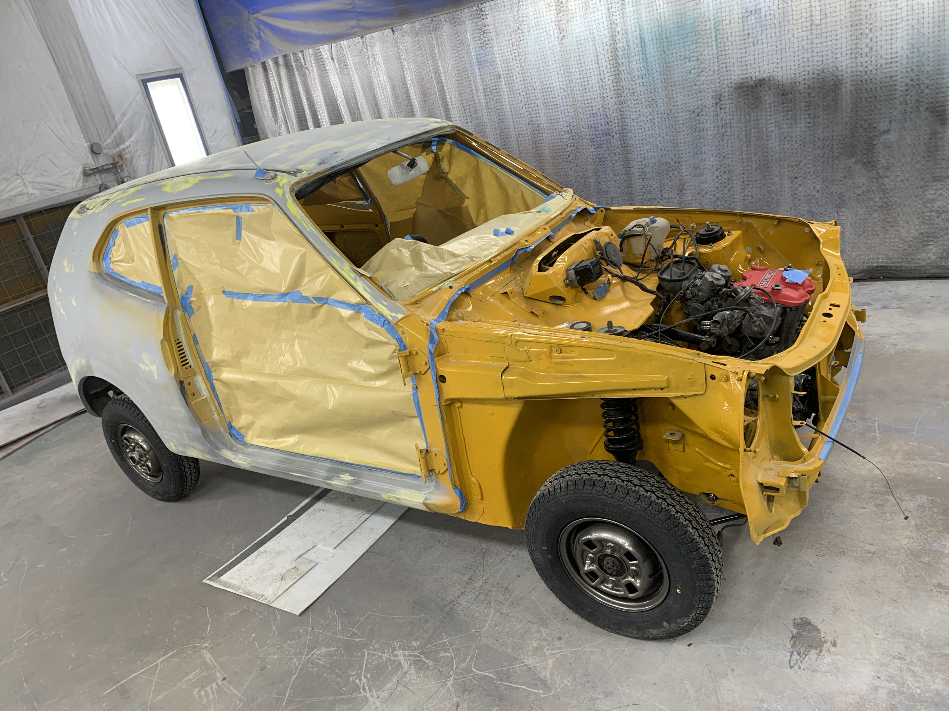 横浜テクノオート専門学校です。国家1級・2級整備士養成課程、さらには鈑金塗装に特化した学科を持つ専門学校です。昨年に続いて2度目の出展となる今回は、1972年式ホンダZを手がけました。